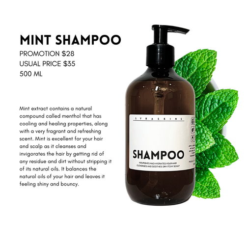 Mint Shampoo: Wake up your senses with the crisp, revitalizing scent of mint while cleansing and strengthening your hair.