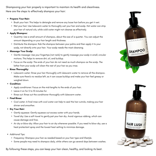 Transform your hair care routine with our exclusive bundle, available for a limited time! Enjoy the refreshing and invigorating Mint Shampoo, the luxurious and nourishing Hair Lush!